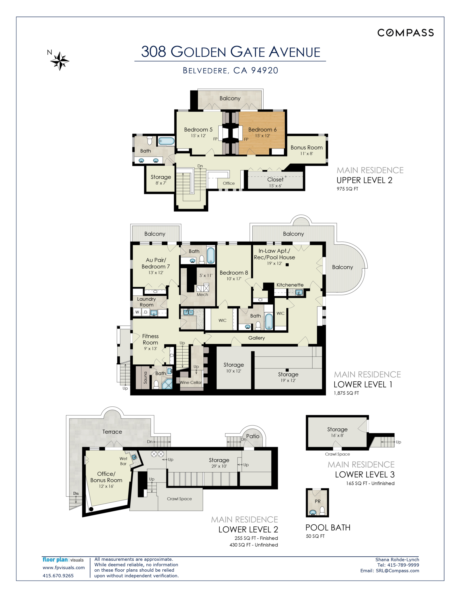 The lower level of the residence features two ensuite bedrooms, an in-law unit/guest quarters, a laundry room, a wine cellar, a fitness room with a full bathroom and a sauna, and multiple storage areas.